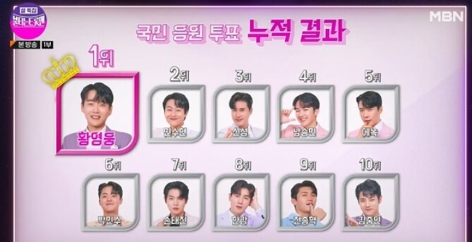 ✅ 황영웅,민수현,박민수,손태진,에녹,공훈,신성,김중연까지 총 8명이 불타는 트롯맨 결승무대에 진출 했습니다.